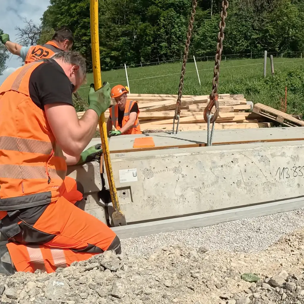 Für Projekte, die besondere konstruktive Anforderungen stellen, bieten wir Hybridplatten an – Betonfertigteile mit bereits integrierten Stahltrögen. Diese Kombination vereint die Vorteile beider Werkstoffe zu einem leistungsstarken System. Die benötigten Stahltröge fertigen wir ebenfalls in unserem eigenen Werk.