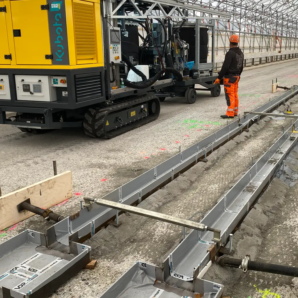 Beim Schienenverguss entscheiden gleichmäßige Materialverteilung, exakte Dosierung und ein kontrollierter Einbau über die Qualität des gesamten Systems. Unsere speziell konstruierten Vergussmaschinen ermöglichen einen kontinuierlichen und reproduzierbaren Verguss von Schienen – unabhängig von Streckenlänge oder Einbausituation.